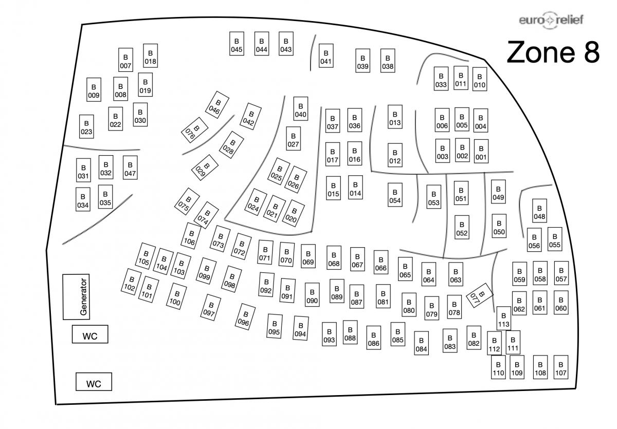 Οι ζώνες αυτές (6-8) είναι κυρίως με οικογένειες που διαμένουν κυρίως σε σχετικά μεγάλες σκηνές οργανισμών (Red Cross, UNHCR κ.α.), οι οποίες όμως είναι καλυμμένες με διάφορα επιπρόσθετα υλικά για τη βροχή και περισσότερη μόνωση, τα οποία επίσης παρέχονται από οργανισμούς όπως το UNHCR, κάτι που φαίνεται από τα λογότυπα πάνω στα υλικά. Επίσης, κάθε σκηνή είναι αριθμημένη με πλαστικά ταμπελάκια των ΜΟΤG, ενώ γύρω από κάθε σκηνή και ανάλογα με το διαθέσιμο χώρο, έχουν διαμορφωθεί από τους ίδιους τους κατοίκους χώροι σαν αυλές, περιφραγμένοι και σκεπασμένοι, όπου μπορούν να κάθονται μόνοι ή με τις οικογένειες και τους/τις φίλους/φίλες τους, μακριά από τα βλέμματα των άλλων.