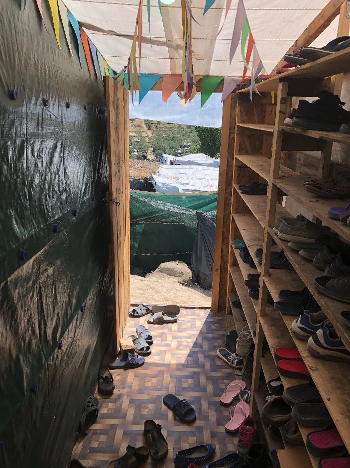 Τέλος, στο πάνω μέρος της ζώνης 10 υπάρχει μια μεγάλη κατασκευή η οποία φαίνεται σαν χώρος λατρείας, αν και σύμφωνα με κάποιους διαμένοντες που ρωτήσαμε κατά την επίσκεψή μας, είναι χώρος μαθημάτων (βλ. εικ. 13). Ωστόσο, σύμφωνα με εργαζομένους σε οργανώσεις που δραστηριοποιούνται στον καταυλισμό αυτή η κατασκευή όντως προοριζόταν για χώρο λατρείας, αλλά μετά τις αντιδράσεις του ιδιοκτήτη του χωραφιού το σχέδιο πρέπει να εγκαταλείφθηκε.