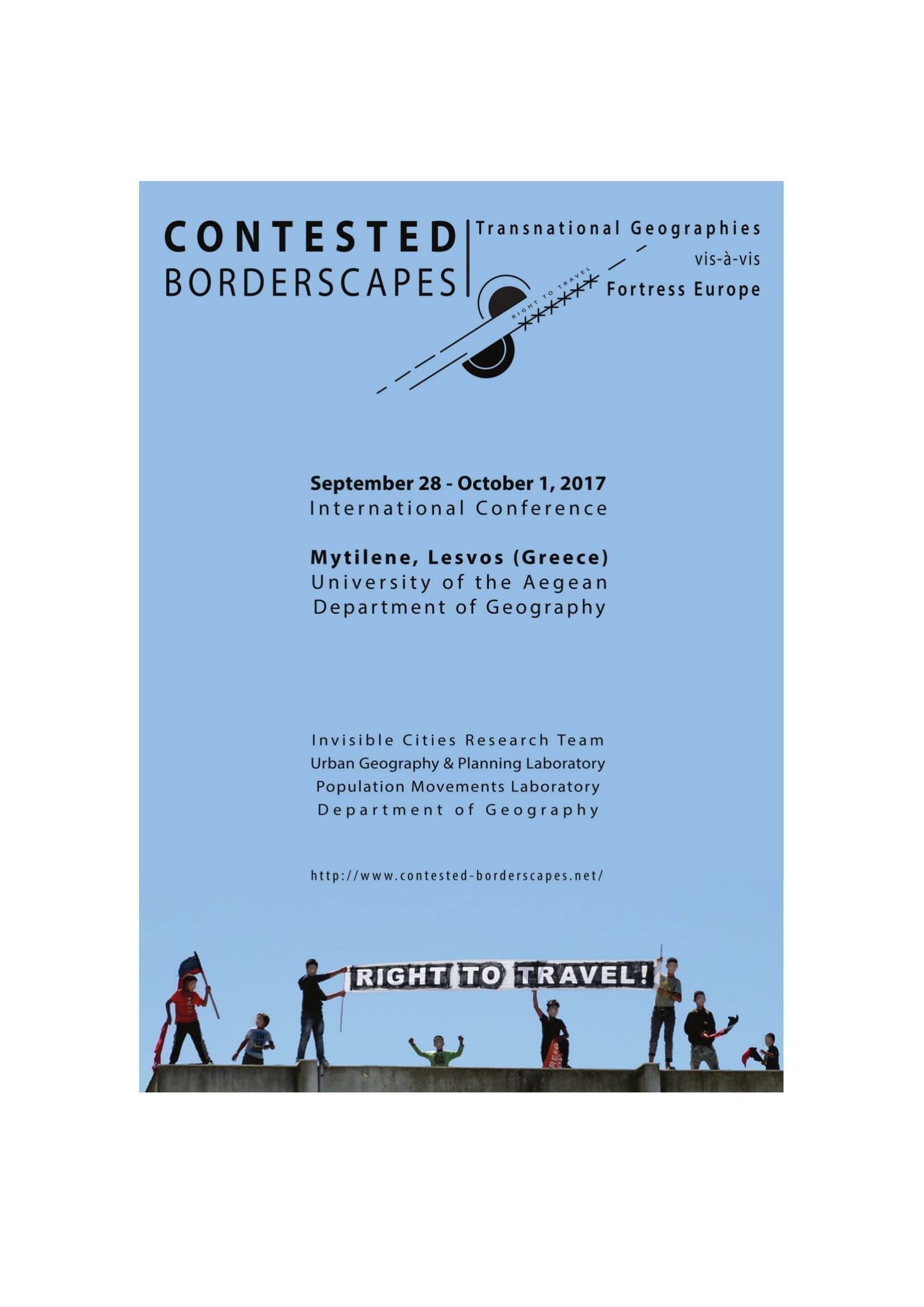 The island of Lesvos is a space of multiple histories of refugee passage, now reinvented as a “hot spot” in the contemporary European regime of migration management, but also reimagined by people who live there as a space of social solidarity with migrant struggles. It thus constitutes one epicentre, or “contested borderscape” of Fortress Europe, and a place where we might learn from local struggles and movements against its murderous politics. If, over the past year, the shores and seaways of Lesvos (“Lesbos”) gained international visibility as the backdrop to untold human suffering, loss, and survival, the purpose of gathering here is not to consume it as a spectacle; instead, we seek to learn from how people here have responded to, and organised in the urgency of what has became mediatised as “the refugee crisis.” The main aim of this international conference is to create a space of critical reflection in which academics, artists, and activists from different disciplines, backgrounds, and locations, can strategise, organise, and analyse the social landscapes of border-spaces such as this, and their reverberations for anti-border politics elsewhere.