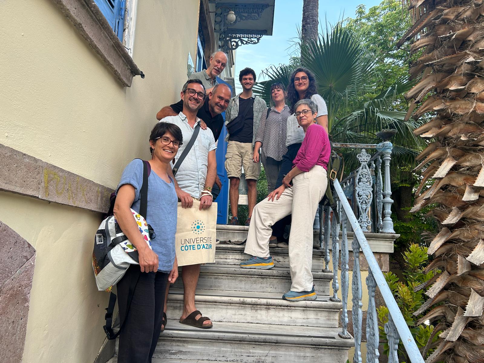 The team from Nice attended part of the PhD candidates' meeting at DSAH from May 18th to 22nd, interacted with members of humanitarian organizations providing shelter, education, legal, and psychosocial support to refugees and migrants in Lesvos, and exchanged ideas on administrative support aspects related to international university collaborations with Ms. Kontara, Head of the International Relations Department of the University of the Aegean, and Ms. Varkaraki, responsible for international student mobility under the Erasmus program.