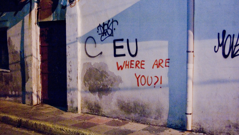 Slogans, stencils and other unauthorized interventions in public space are the results of a spatial but also a visual practice, which is common in activist cultures, especially in urban settings. Such interventions express, on the one hand, the activist presence on the island and, on the other, they are representative of the sociopolitical and spatial context in which they are produced, and in which they are viewed and experienced by the public.