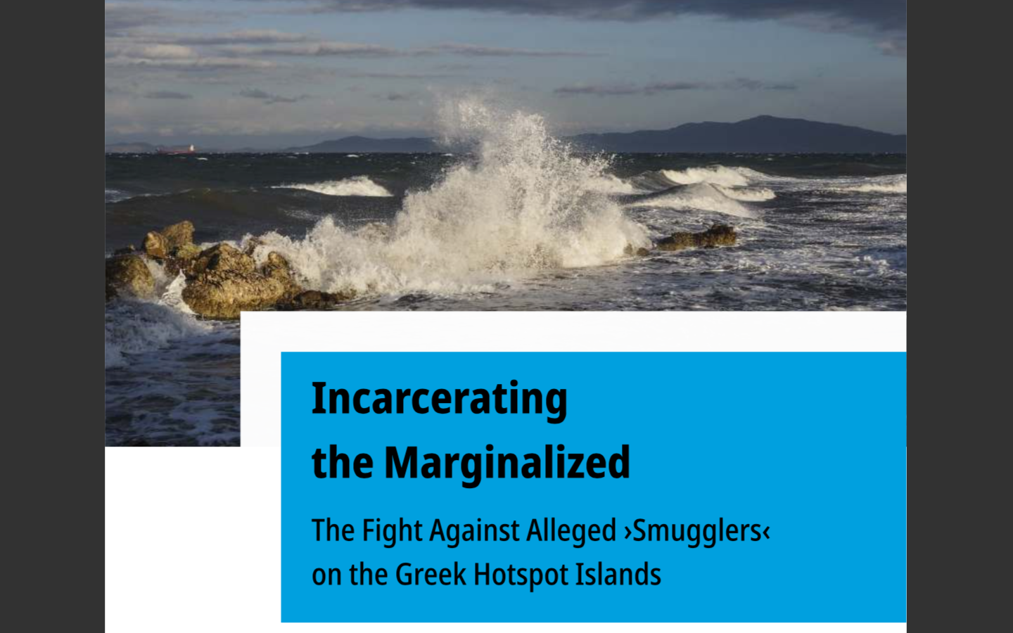 The following report outlines the system of punishment and incarceration of migrants who are accused of human smuggling at the EU-external border in the Aegean. It bears witness to the fates of people who have been sentenced to life long imprisonment in Greece. Some of them were not aware of having committed a felony crime by driving a boat with asylum seekers from Greece to Turkey; others were only crossing the border to seek asylum in the Euro- pean Union themselves. Upon arrival, they were arrested, often beaten, and held for months in pre-trial detention, until they were convicted in a court procedure violating basic standards of fairness. The harsh criminalization described in this report cannot be understood outside of the broader frame- work of the anti-smuggling policies of the European border regime, which will be analysed in this report alongside narratives on human smuggling, as well as the evolution of anti-smuggling legislation within the European Union.