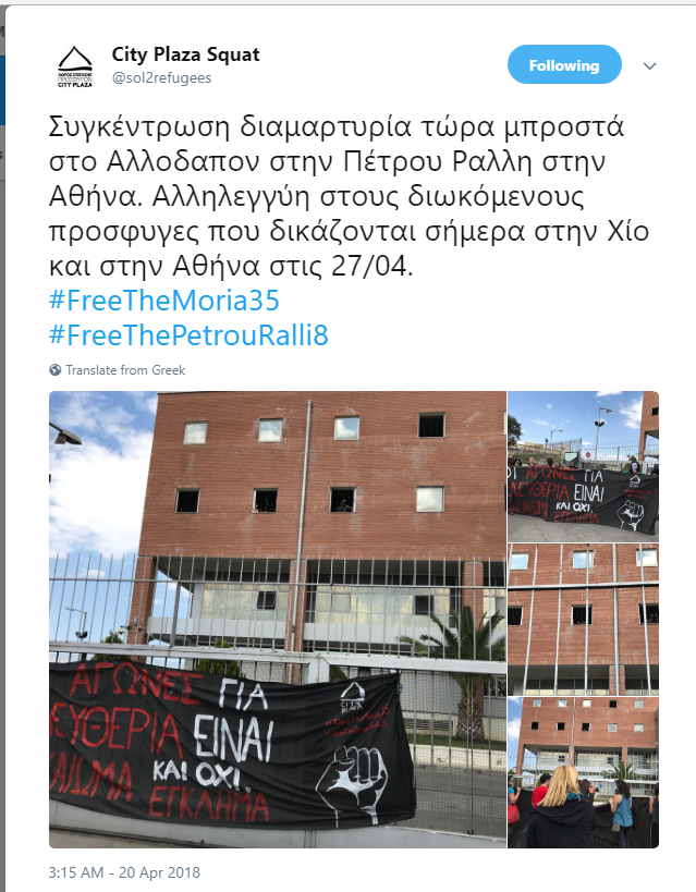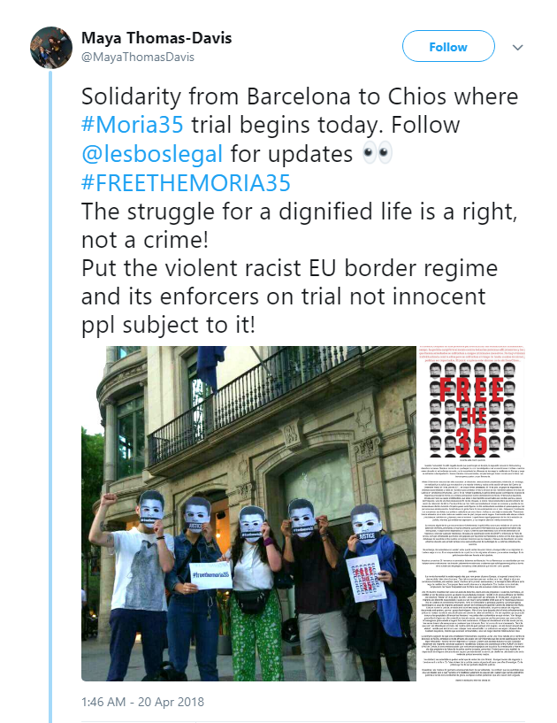 Struggling for a dignified life is a right, not a crime! The Moria 35 punitive trials | Open Democracy | 14 Apr. 2018
