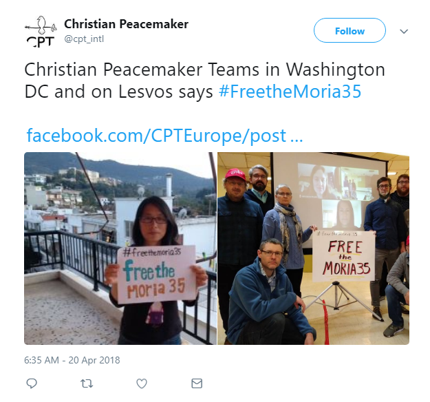 For more information watch these videos in Greek or English and follow the hashtag #freethemoria35!