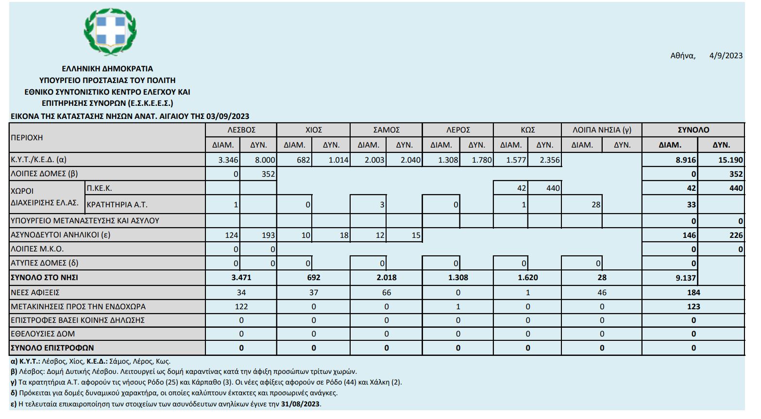 Συγκεκριμένα με βάση τα επίσημα στοιχεία έως 03/09/2023 στον Καρά Τεπέ υπήρχαν 3.346 άτομα.