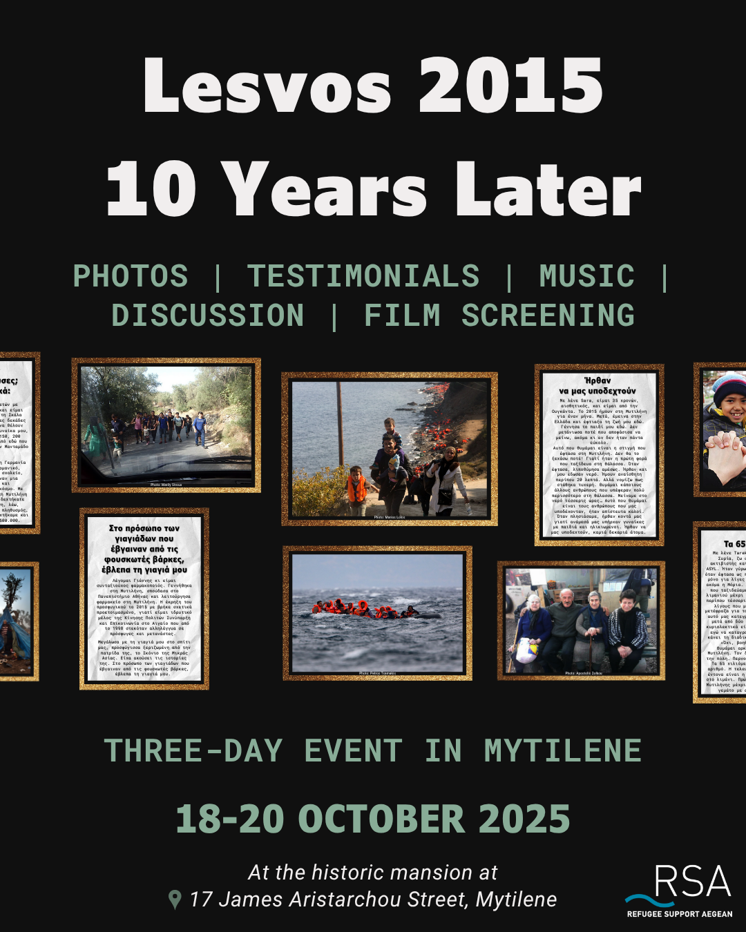 Ten years later, Refugee Support Aegean (RSA), with the support of the PRO ASYL Foundation, is organising the three-day event “Lesvos 2015 – 10 Years Later” in Mytilene, on 18, 19 and 20 October.