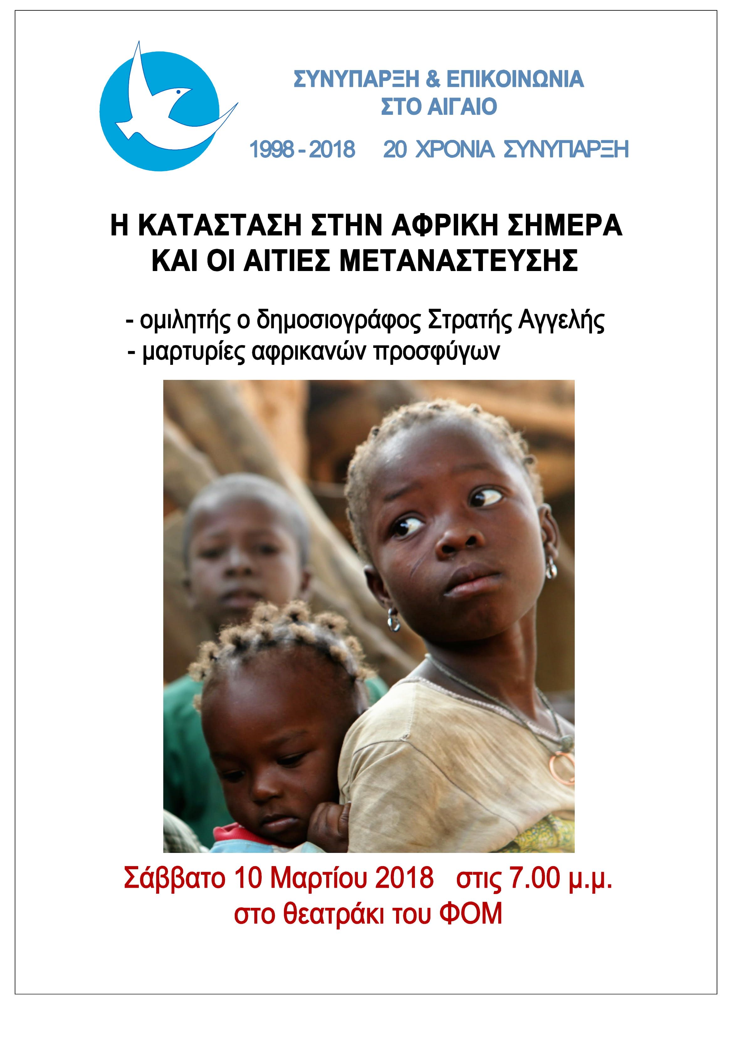Η Κίνηση Πολιτών Συνύπαρξη και Επικοινωνία στο Αιγαίο σας προσκαλεί στην εκδήλωση με θέμα "Η κατάσταση στην Αφρική σήμερα και οι αιτίες της μετανάστευσης"