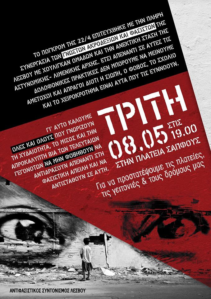 Αντιφασιστική Πορεία στη Μυτιλήνη | Τρίτη 8 Μάη 19.00 Πλατεία Σαπφούς