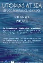 Το Floating Laboratory of Action & Theory At Sea (FLOATS–Το Πλωτό Εργαστήρι Δράσης και Θεωρίας στη Θάλασσα) σε συνεργασία με το Διεθνές Μεταπτυχιακό Θερινό Σχολείο ‘Cultures, Migrations, Borders’ («Πολιτισμοί, Μεταναστεύσεις, Σύνορα») και το Τμήμα Κοινωνικής Ανθρωπολογίας και Ιστορίας του Πανεπιστημίου Αιγαίου (Λέσβος) διοργανώνουν μια θερινή συνάντηση στη Λέσβο, στην Ελλάδα [13-15 Ιουλίου] που θα διερευνήσει τις πρακτικές και τις θεωρίες της ουτοπίας στη θάλασσα.