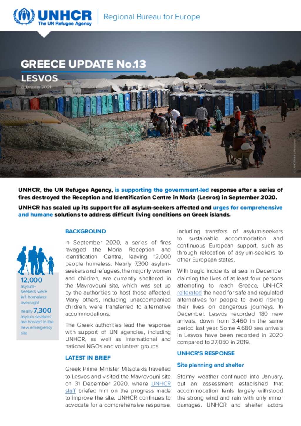 UNHCR, the UN Refugee Agency, is supporting the government-led response after a series of fires destroyed the Reception and Identification Centre in Moria (Lesvos) in September 2020. UNHCR has scaled up its support for all asylum-seekers affected and urges for comprehensive and humane solutions to address difficult living conditions on Greek islands.